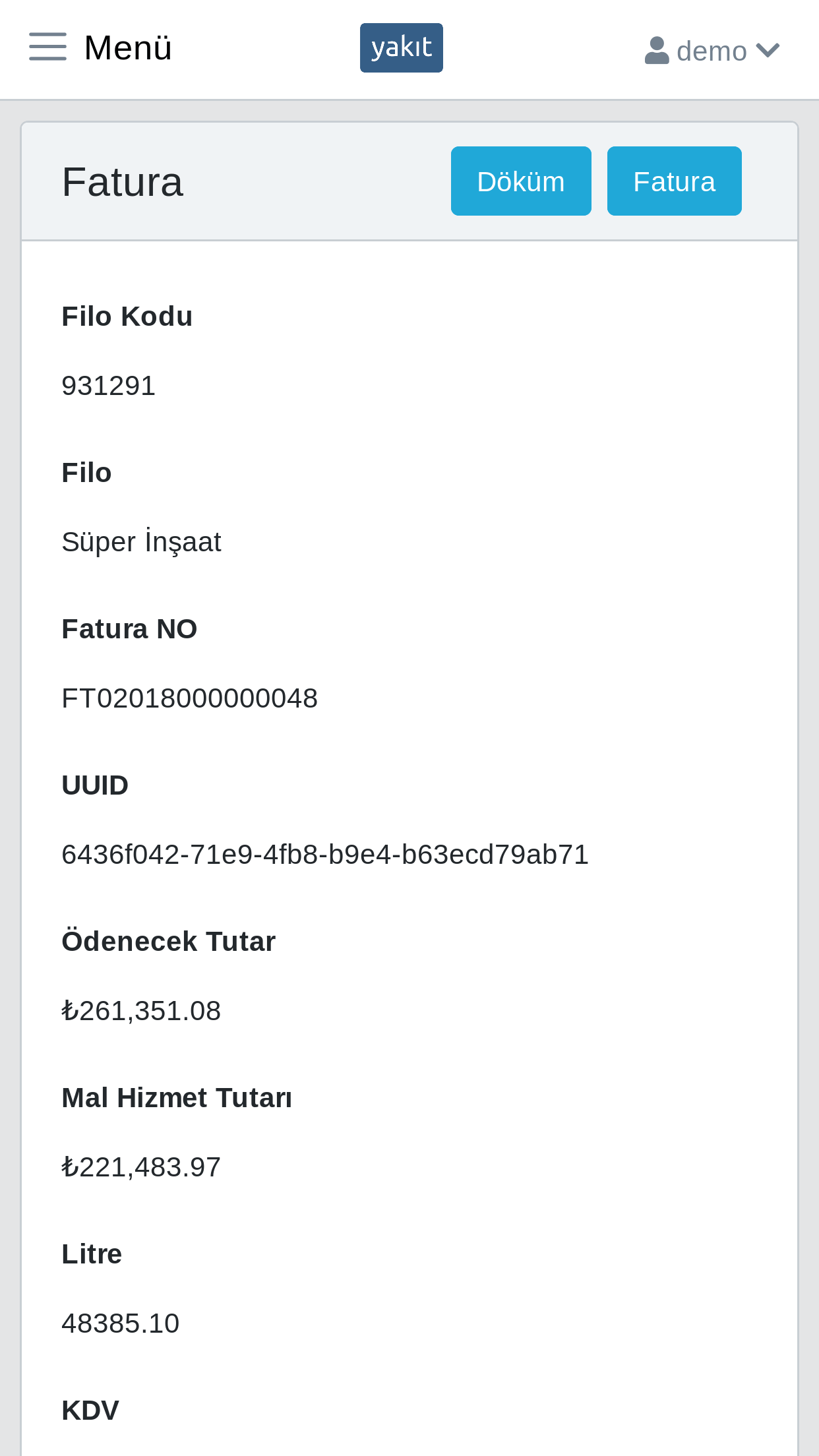 Yakıt alımlarını otomatik fiyat farkı ve iskonto hesaplarıyla faturalayın, yakıt alım dökümlerini e-posta ile kolayca iletin.